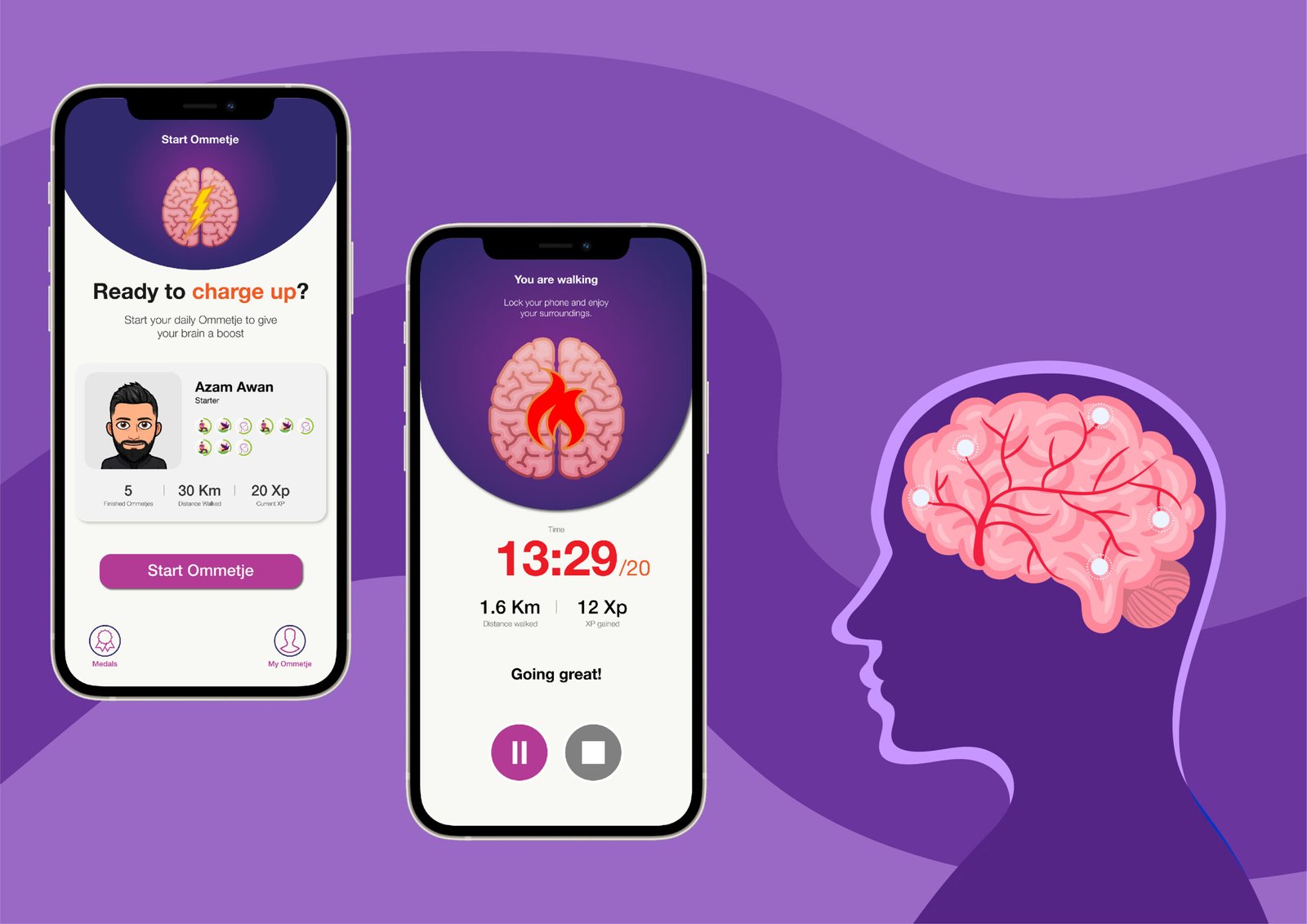 Applicatie redesign van Ommetje. Bevorder de gezondheid van je hersenen.